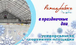 Новогодний режим работы катка: - 31 декабря и 1 января - выходные дни; - со 2 по 11 января - с 12:00 до 21:00.
